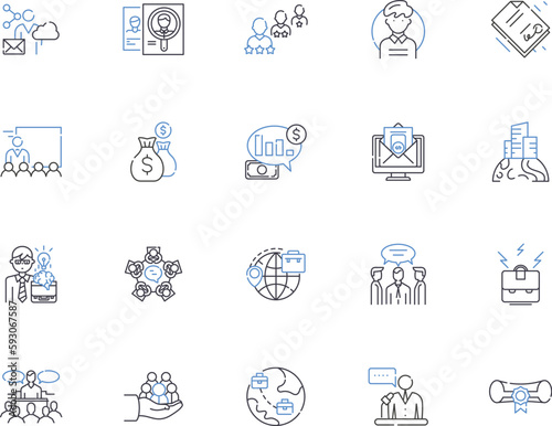 Digital Agency outline icons collection. Digital, Agency, Marketing, Design, Web, Branding, Strategy vector and illustration concept set. Services, Solutions, Online linear signs