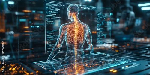 Digital Anatomy: Glowing Skeletal Structure on Futuristic Screen