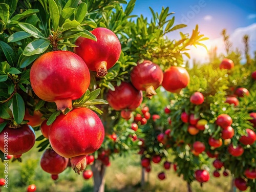 Digital art: a pomegranate orchard, vivid and dreamy.