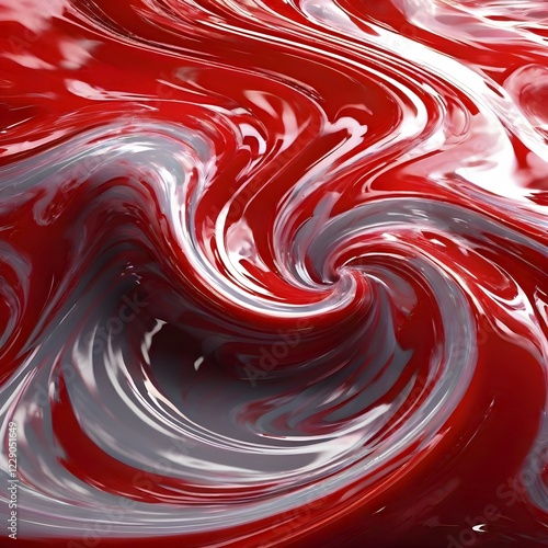 Digital art illustration of a liquid whirlpool swirling with red and silver tones, AI generated