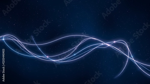 Digital Art with Curved Lines, Soft Light, and Cosmic Elements