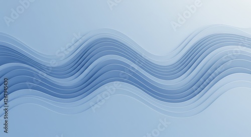 Digital artwork featuring a wavy, undulating pattern in light blue, with evenly spaced lines creating depth, movement, and a three-dimensional effect.