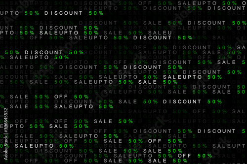 Digital background concept of marketing word sale up to, off sale, discount 50% or 50 percent or fifty percent.