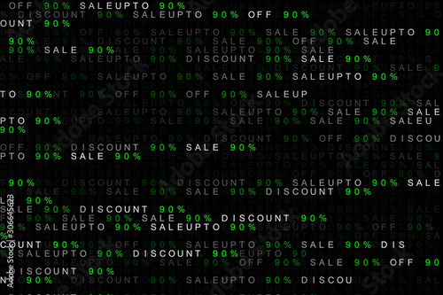 Digital background concept of marketing word sale up to, off sale, discount 90% or 90 percent or ninty percenty.