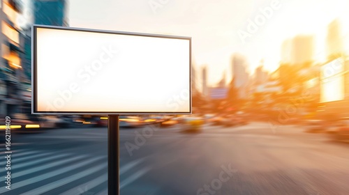 Digital billboard mockup, vibrant advertisement, busy intersection, urban marketing