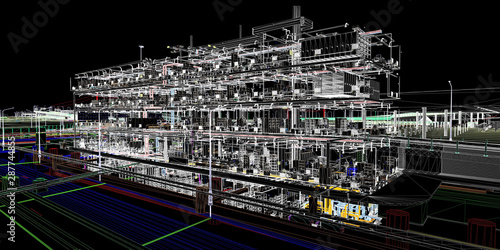 Digital BIM model conceptual visualization of the utilities of the building