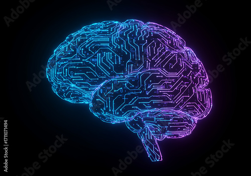 Digital Brain A Neon Circuitry Representation of Artificial Intelligence on a Black Background
