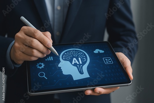 Digital Brain Concept with AI Interface on Tablet Device Image