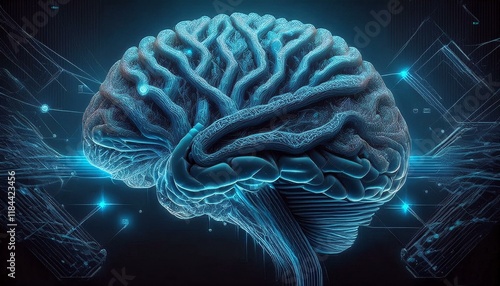 Digital Brain Hologram Artificial intelligence AI machine deep learning graphic resource