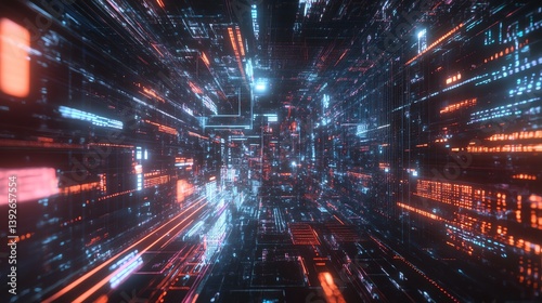 Digital brain hologram with interactive data visualizations and glowing lines, set against a futuristic technology backdrop, symbolizing the future of AI and neural networks