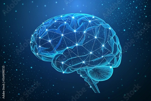 Digital brain illustration conveys artificial intelligence and futuristic neurology concepts with network connectivity.