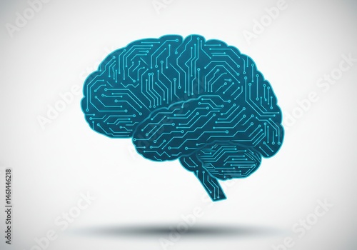 Digital brain illustration with circuit board pattern on a white background representing artificial intelligence