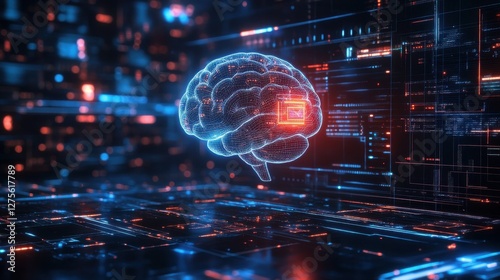 Digital Brain Network: Glowing Abstract Hologram in Dark Cyber Space