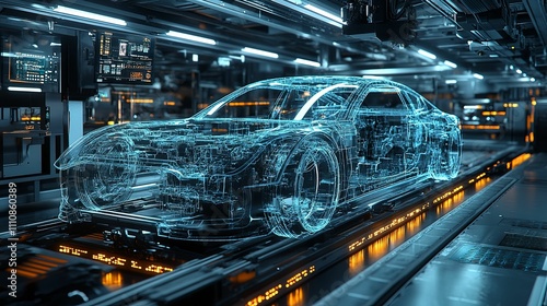 Digital Car Model On Modern Assembly Line