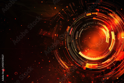 Digital circuit design with vibrant orange and black colors, showcasing innovation and technology. abstract pattern evokes sense of modernity and creativity