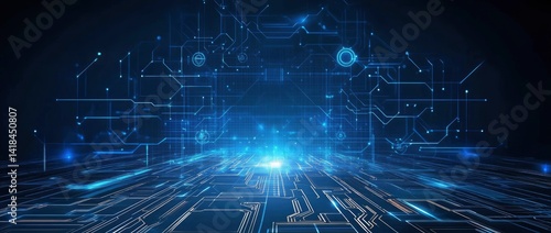 Digital Circuitry: A Futuristic Blue Glow Abstract