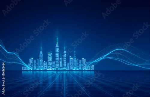 Digital Cityscape with Futuristic Elements