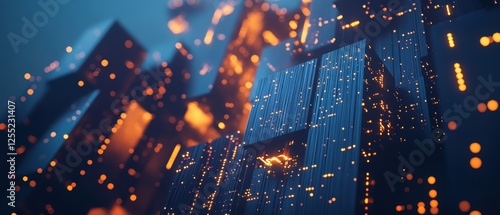 Digital cityscape with glowing lights and futuristic skyscrapers representing technology, innovation, and urban development in a modern metropolis.