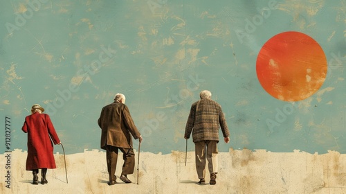 Digital collage representing different aspects of retirement.
