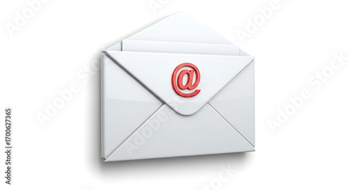 Digital Communication Isolated white envelope with the at symbol, symbolizing email and online correspondence