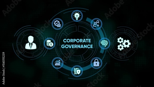 Digital corporate governance illustration featuring icons representing business concepts and strategy