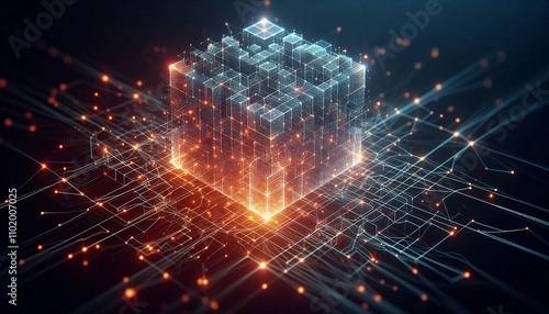 Digital cubes pulsating with energy intertwined in a dynamic and luminescent network embodying