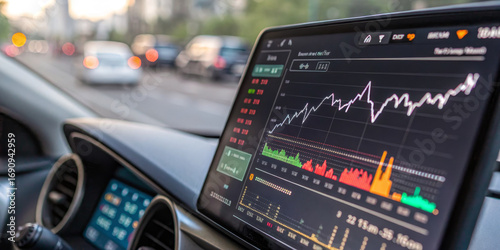 Digital dashboard car interior traffic data analysis graph spike tariff collection technology finance urban