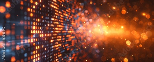 Digital data technology background with binary code and glowing lights, symbolizing the power of big data in computer science and business. Stylish stock photo with a solid color background