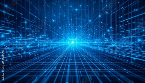 Digital Data Universe: a mesmerizing network of interconnected lines and luminous nodes, all set against a captivating and cool azure backdrop, evoking a sense of technological wonder.