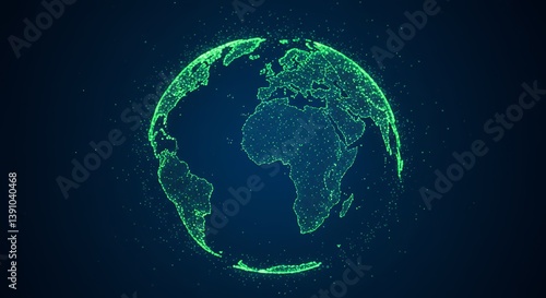 Digital Earth Globe Technology Shining Brightly with Green Light Representing Global Connectivity and Futuristic Innovation in a Modern Style