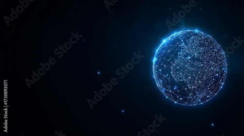 Digital Earth Globe with Glowing Connections and Data Transmission on a Dark Background for Global Communication and Technology