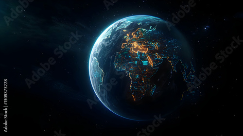 Digital Earth Illuminated In Space Depicting Global Technology And Network Connections
