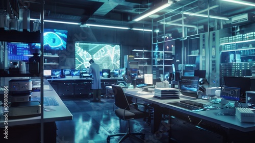 digital forensic investigation lab where experts use virtual reality to reconstruct crime scenes for detailed analysis