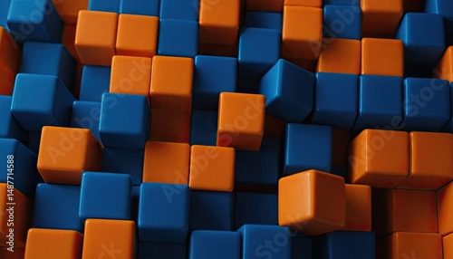 Digital Fusion Blue and Orange Cubes on a MicrochipShaped Background 1