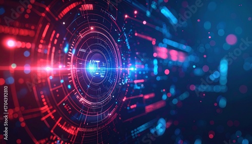 Digital futuristic technology with glowing red and blue elements, creating a sense of advanced data processing and the future of the internet.
