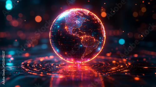 Digital Globe Futuristic Network Technology Global Orange Blue Data Neon Glow World Cyber Light