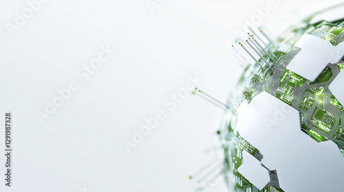 Digital globe with circuit patterns and green accents, symbolizing technology and innovation