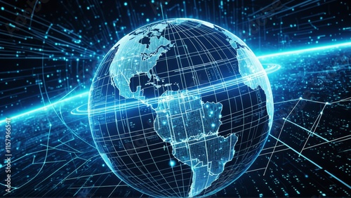 Digital globe with data connections and technological background