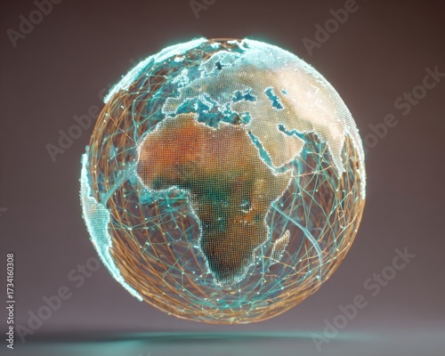 Digital Globe with Glowing Network Lines Showing Africa and Global Connectivity