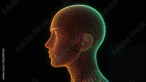 Digital glowing human head.