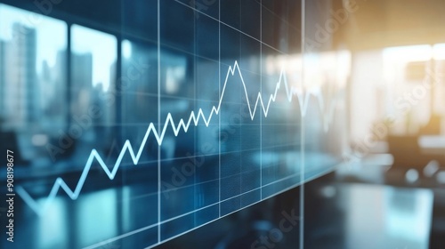 Digital Graph on Transparent Glass Overlaying Office Background - Financial Analysis, Data Visualization, Corporate Strategy