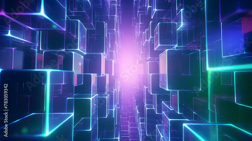 Digital green and purple mosaic square abstract graphic poster web page PPT background