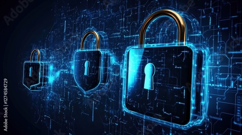 Digital Guardians: A mesmerizing depiction of data security, featuring stylized glowing padlocks and intricate circuitry, conveying a sense of robust protection and confidentiality.