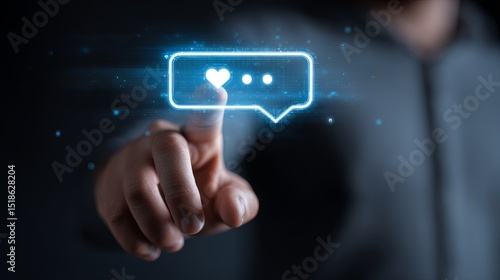 Digital Hand Interacting with a Futuristic Blue Heart Message Icon Modern Technology Concept Abstract Communication Interface Innovative Digital Interaction Elegant Blue