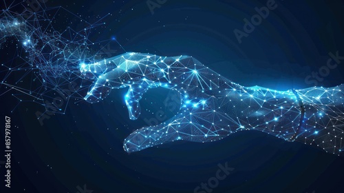 Digital Hand Reaching Out with a Blue Glow