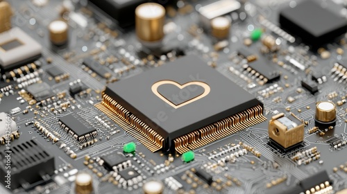 Digital Heart Circuit Board CPU Love Technology AI Closeup