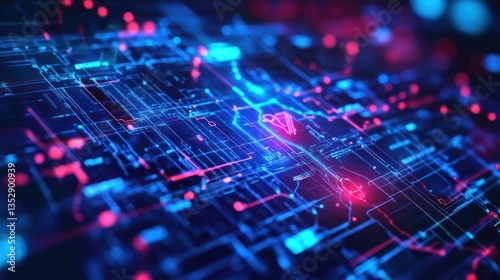 Digital heart, glowing circuit board, network data stream, technology background, website banner