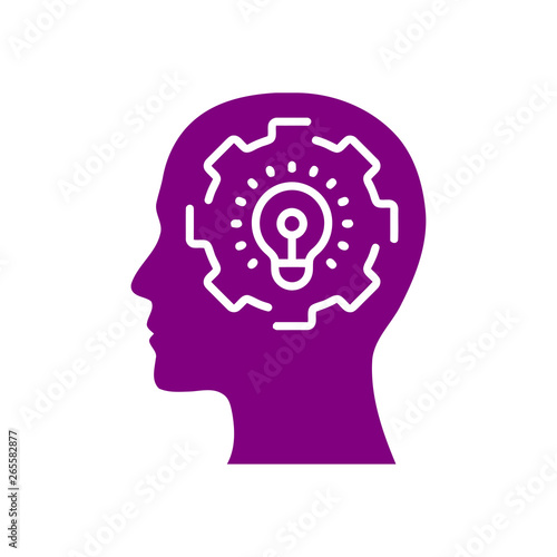 digital human head, brain, technology, head, memory, creative technology mind, artificial intelligence purple color icon