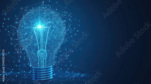 Digital Idea Concept with Glowing Light Bulb and Network Connections on Dark Blue Background