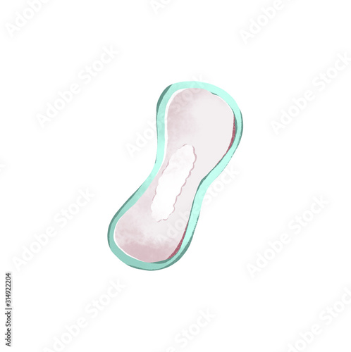 Digital illustration of a cute laying feminine hygiene items in the menstrual cycle. Print for stickers, icons, packaging isolate on a white background.